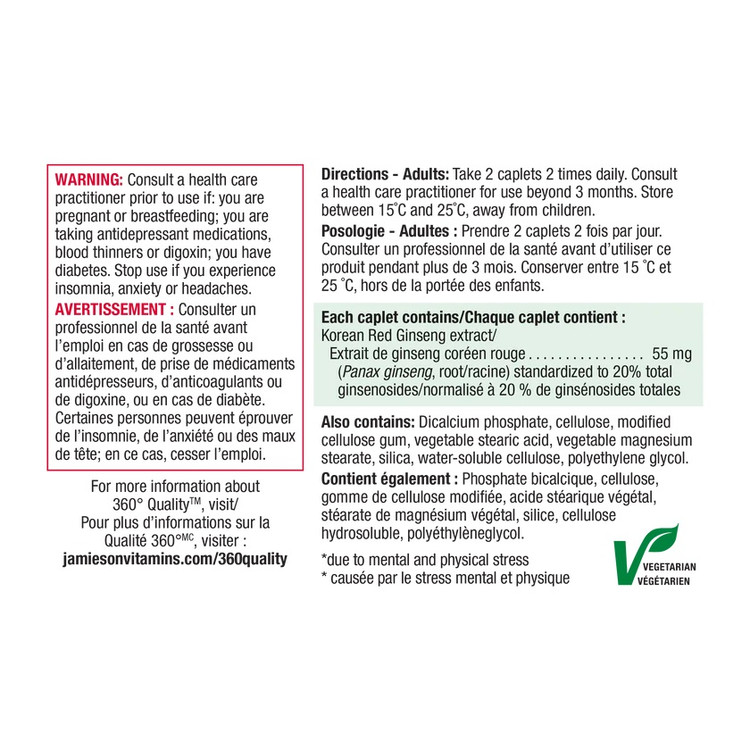 کورین رد جینسینگ جمیسون که از مرغوب ترین جینسنگ قدیمی گرفته شده است به مبارزه با خستگی و استرس کمک می کند و در عین حال توانایی های جسمی و ذهنی را افزایش می دهد.