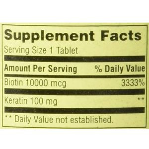 مکمل غذایی برای حمایت از سلامت مو، پوست و ناخن فرمول قدرتمند: 10000 میکروگرم بیوتین و 100 میلی گرم کراتین در هر قرص بدون گلوتن، لاکتوز، رنگ های مصنوعی یا طعم دهنده های مصنوعی 1 قرص در روز 60 قرص در هر بطری برای تامین 2 ماه
