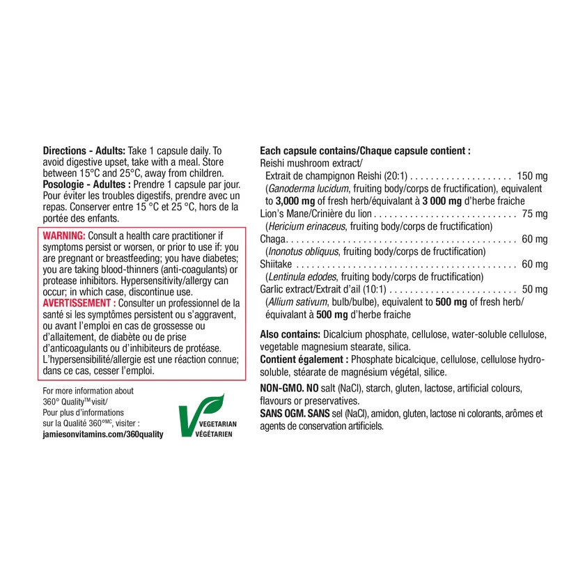 ماشروم کمپلکس جمیسون ترکیبی از قارچ ریشی، یال شیر، شیتاکه و چاگا است که با سیر فرموله شده است تا طیف وسیعی از فواید، از حمایت از ایمنی بدن تا افزایش انرژی را ارائه دهد. قارچ به عنوان بخشی از طب سنتی هزاران سال است که استفاده می شود.