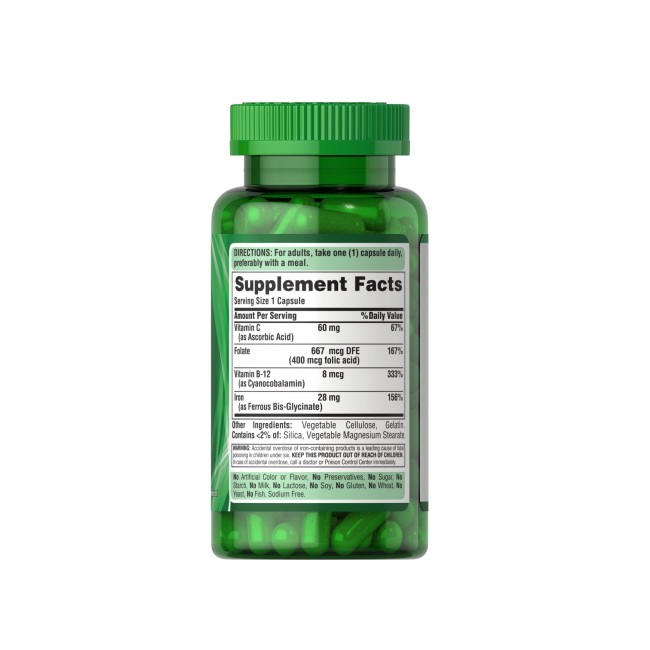 محصول آمریکا - مکمل آهن و مولتی ویتامین - حاوی 28 میلی گرم آهن در هر وعده است - به علاوه ، B-12و ویتامین C - عرضه 90 روزه 90 قرص