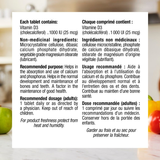 ویتامین آفتاب در یک بطری! ویتامین D مدتهاست که به ساخت استخوانها و دندانهای قوی کمک میکند، اما نقش مهمی در سلامت سیستم ایمنی نیز دارد. ویتامین D که به عنوان ویتامین آفتاب شناخته می شود، در بدن ما از قرار گرفتن در معرض نور خورشید تولید می شود. اما از آنجایی که بسیاری از کانادایی ها نمی توانند تنها از طریق رژیم غذایی یا قرار گرفتن در معرض نور خورشید به سطوح سالم ویتامین D برسند، مصرف مکمل آن بسیار مهم است.