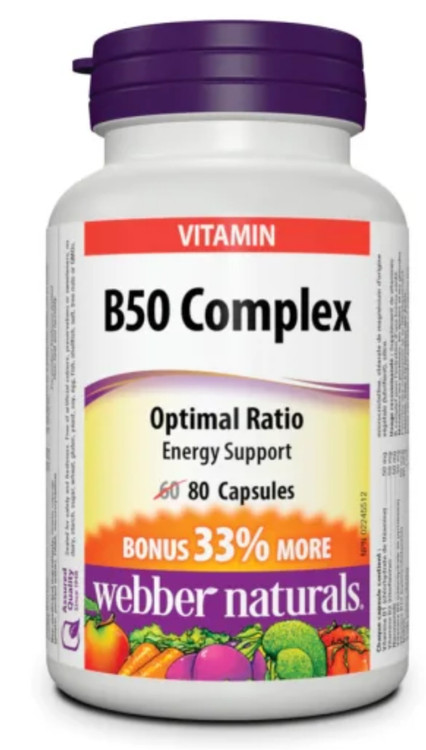 ) محصول کانادا - به بدن در متابولیسم پروتئین ها، چربی ها و کربوهیدرات ها کمک می کند از رشد و نمو طبیعی حمایت می کند حاوی خانواده کامل ویتامین های B است 50 میلی گرم از اکثر ویتامین های گروه B، به علاوه مواد مغذی حمایتی را فراهم می کند