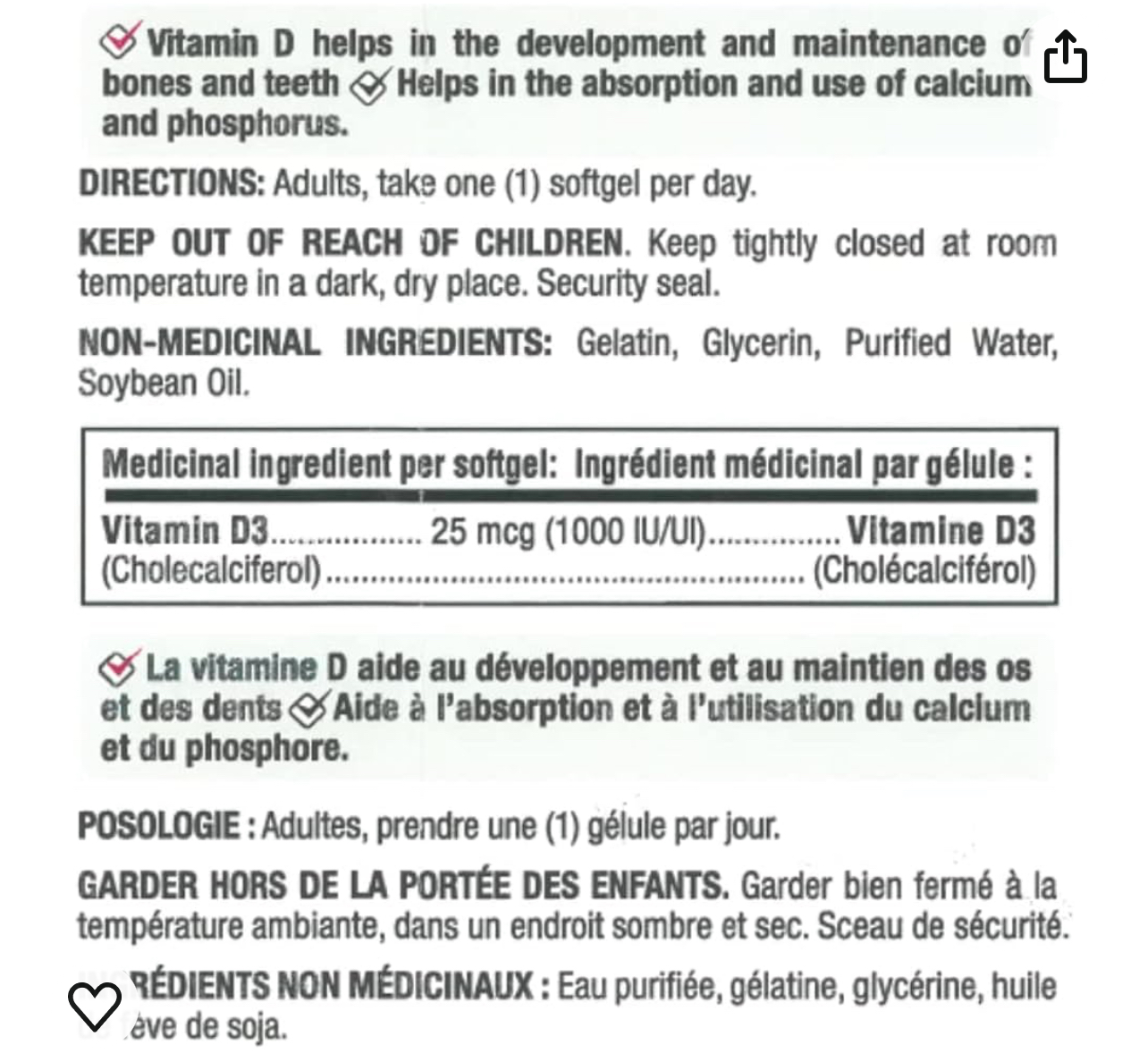 ویژگی: به حفظ عملکرد سیستم ایمنی کمک می کند ویتامین D به جذب و استفاده از کلسیم و فسفر کمک می کند یک ژل نرم حاوی 1000IU ویتامین D است اندازه ارزش مگا بزرگسالان، یک ژل نرم در روز همراه غذا مصرف کنید