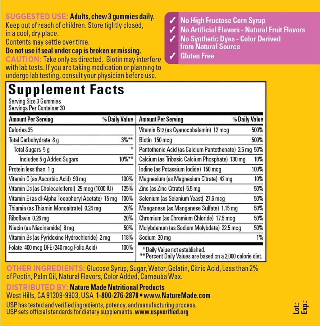 - حاوی ویتامینهای A، C، D، E، B12، فولیک اسید، بیوتین و زینک