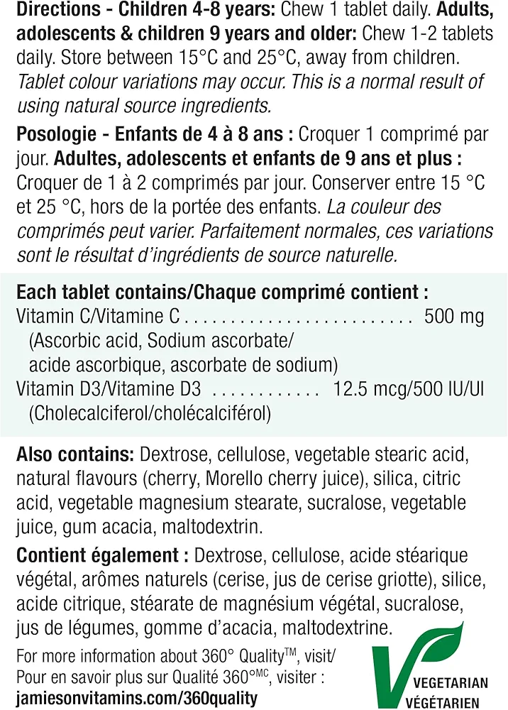 قرص. جویدنی ویتامین C + D جیمیسون، ۷۵ قرصJamieson Vitamin C + D