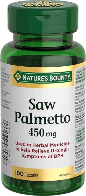 تسکین علائم BPH: عصاره نخل ارهای ۴۵۰ میلیگرمی Nature's Bounty در طب گیاهی برای کمک به تسکین علائم ادراری BPH استفاده میشود.