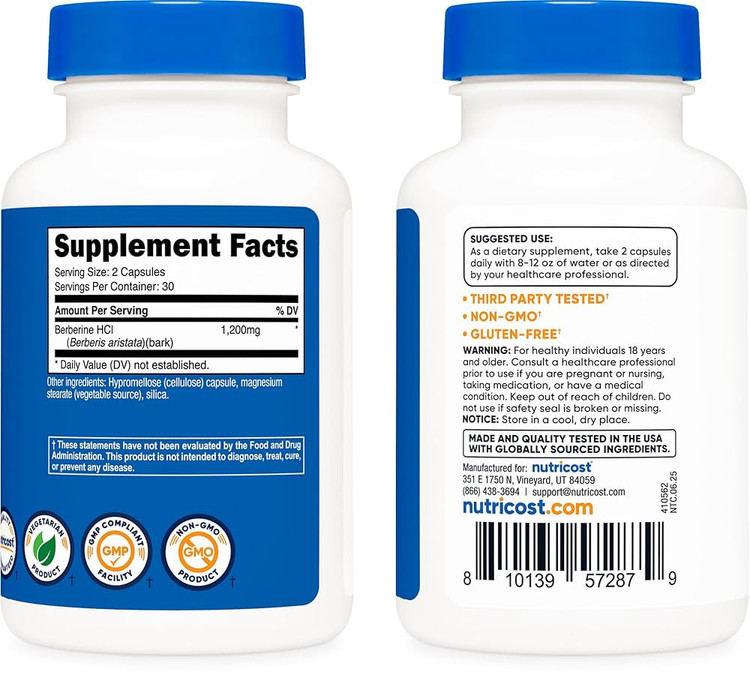 Nutricost Berberine HCl 1200mg , 60 Vegetarian Capsules - Gluten Free & Non-GMO