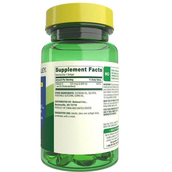 روش مصرف کپسول ویتامین دی اسپرینگ والی Spring Valley Vitamin D3 5000IU