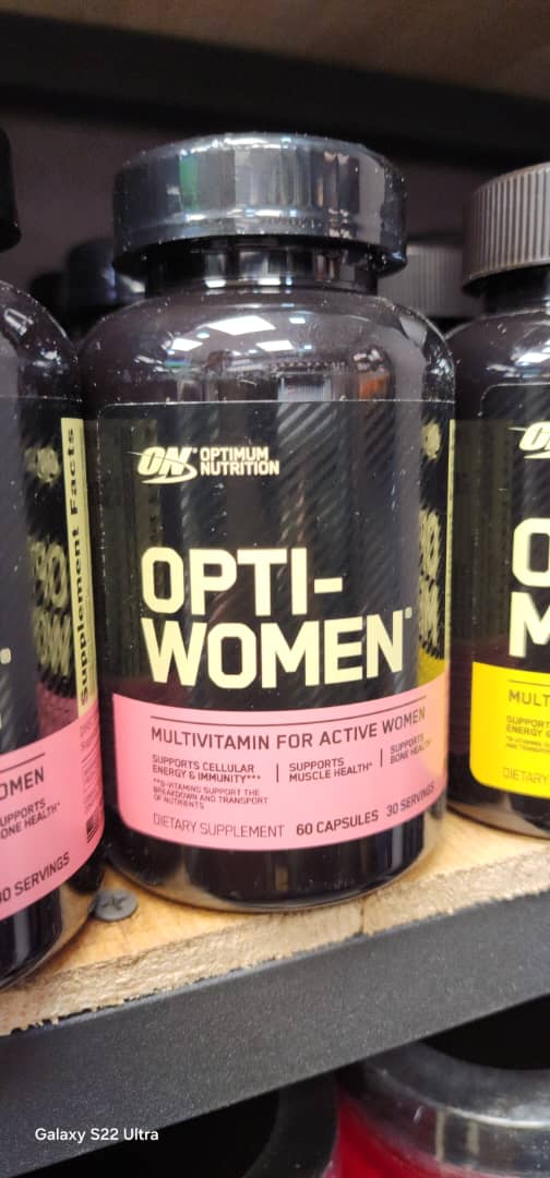 مکمل مولتیویتامین “Opti-Women” از شرکت Optimum Nutrition است. مولتی ویتامین اپتی ومن اپتیموم (Optimum Nutrition Opti-Women Multivitamin) به طور خاص برای نیازهای تغذیهای بانوان طراحی شده و شامل ترکیبی از ویتامینها، مواد معدنی و ترکیبات گیاهی مفید است. مولتی ویتامین بانوان Opti-Women اپتیموم (ON Opti-Women Multivitamin) یک انتخاب عالی برای بانوانی است که به دنبال یک مکمل جامع برای حمایت از سلامت عمومی، بهبود انرژی و تقویت سیستم ایمنی هستند. هر بسته مولتی ویتامین Opti Women بانوان حاوی ۶۰ کپسول است که برای ۳۰ روز مصرف طراحی شده (۲ کپسول در روز) و دارای ترکیباتی از ۲۳ نوع ویتامین و مواد معدنی ضروری و گیاهی میباشد.