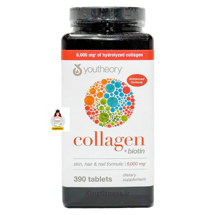 مکمل کلاژن یوتئوری Youtheory از محصولات مرقبت از مو می باشد که محصول کشور آمریکا و حاوی ۳۹۰ عدد قرص در هر بطری است که با داشتن ترکیبات موثر در دستیابی به سلامت جسمی و زیبایی ظاهری به شما کمک می کند. این مکمل حاوی کلاژن هیدرولیز شده است که موجب تغذیه و احیای پوست، مو و ناخن شده و سایر اندام ها مانند تاندون ها و رباط ها و ... را تقویت می کند. این محصول همچنین دارای دوز روزانه ویتامین C می باشد که 100% نیاز روزانه بدن به ویتامین C را تامین کرده و با داشتن خواص آنتی اکسیدانی به افزایش کلاژن سازی طبیعی و محفاظت از پوست کمک می کند.