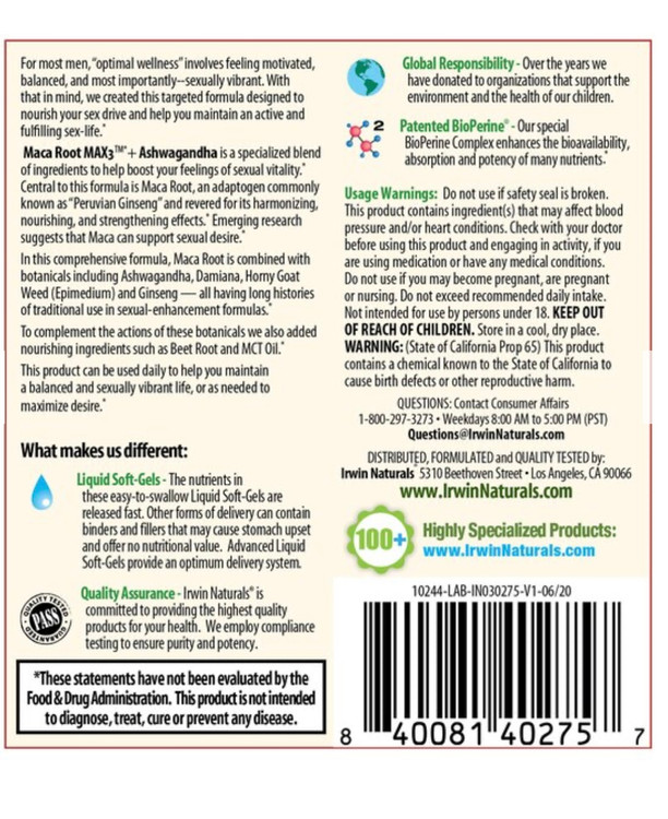 ریشه ماکا غلیظ و آشواگاندا به طور خاص برای کمک به تقویت احساس نشاط جن.سی و بازگرداندن تعادل طراحی شده است.