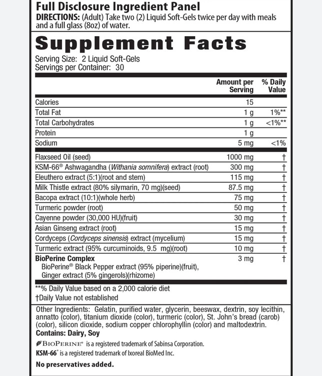 این محصول دارای عصاره KSM-66 Ashwagandha است که به دلیل توانایی آن در ارتقای وضوح ذهنی، تمرکز و هوشیاری و همچنین حمایت از سلامت جسمانی و اثرات تطبیقی برای افزایش عملکرد ذهنی و فیزیکی شناخته شده است.* KSM-66 با عصاره هایی از ترکیبی از آداپتوژنهای مکمل مانند Eleuthero، Bacopa، Cordyceps و Ginseng - که همگی به طور سنتی در فرمولهای زندهکنندهای استفاده میشوند که بر روی پاسخ به استرس تمرکز دارند. سلامتی و تقویت محافظت آنتی اکسیدانی که برای حفظ سلامت عمومی و طول عمر مهم هستند.