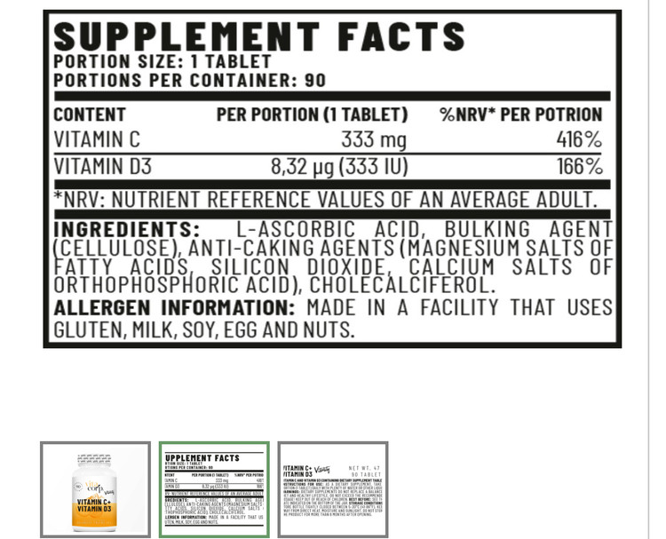 Hyjiyastore بهترین مکان برای خرید Vitacorp Vitality Vitamin C + Vitamin D3 90 Tabs در دبی، ابوظبی، شارجه، العین، امارات متحده عربی، خاورمیانه است. اکنون حمل و نقل به دوحه - قطر، عربستان سعودی - عربستان سعودی، بحرین، کویت، عمان در شورای همکاری خلیج فارس در دسترس است. مشتریان ما همچنان به این دلیل بازمی گردند، ما بهترین خدمات پشتیبانی مشتری / نقدی هنگام تحویل و تحویل یک روزه را در امارات داریم.