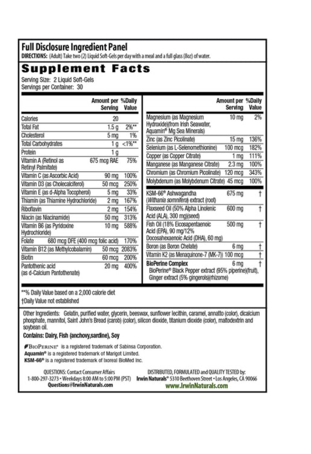Irwin Naturals Daily Multi Testosterone Up Liquid Soft-gels, 60 CT