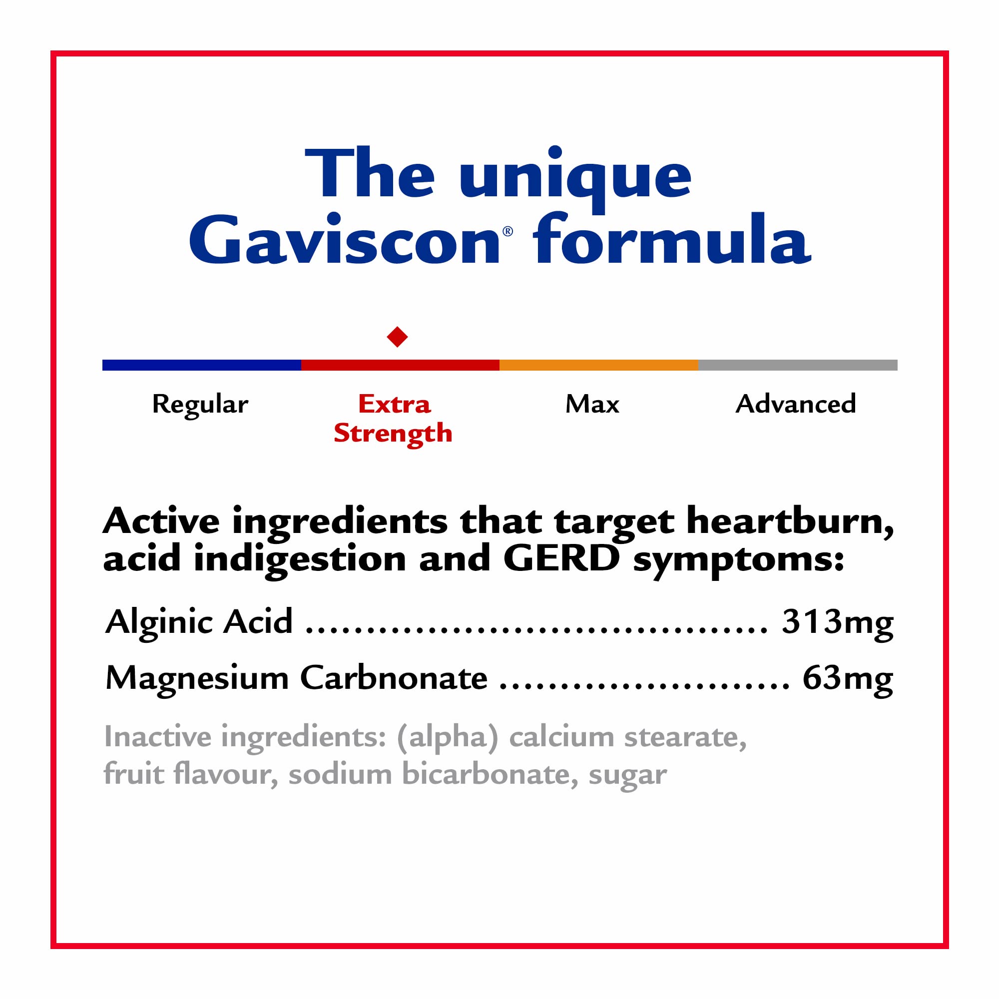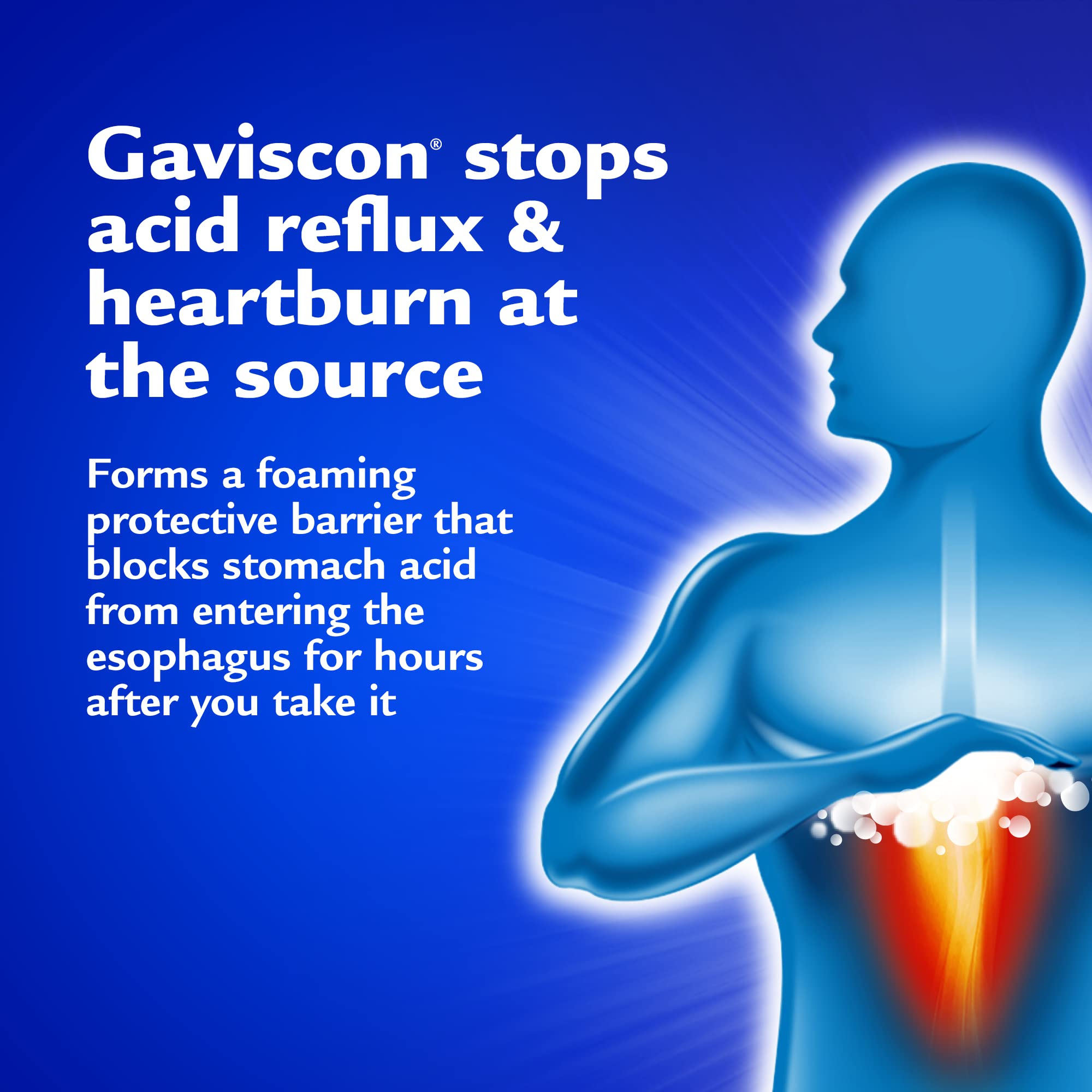 تسکین سریع و طولانی مدت سوزش سر دل: قرصهای Gaviscon Extra Strength که توسط پزشک توصیه شده است، فوراً کار میکنند و در عرض چند دقیقه تسکین طولانیمدت سوزش سر دل را ارائه میکنند که ساعتها طول میکشد. احساس کنید فوم فوم گاویسکون شروع به کار می کند