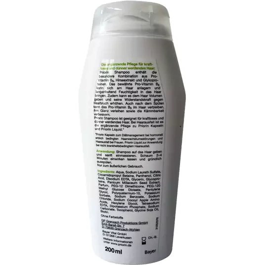 شامپو پریورین بایر (Bayer Priorin Shampoo for Hair Loss Dry and Normal Hair) یک محصول تخصصی برای درمان ریزش و سستی موها است. این شامپو برای موهای سست و نازک، دارای ریزش و انواع تایپهای مویی ایدهآل است. حجم آن 200 میلی لیتر است؛ باعث افزایش گردش خون مویرگی کف سر میشود و ریزش موها را کنترل میکند.