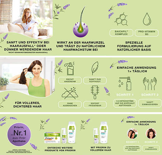 اگر شما نیز تحت تأثیر قرار گرفته اید، ما کپسول های پریورین Priorin® را به شما توصیه می کنیم: کپسول های پریورین Priorin® که برای مدیریت رژیم غذایی در زمینه اختلالات رشد موی ارثی و ریزش مو در خانم ها تهیه شده اند، حاوی مجموعه خاصی از عناصر ریز مغذی ویژه هستند.