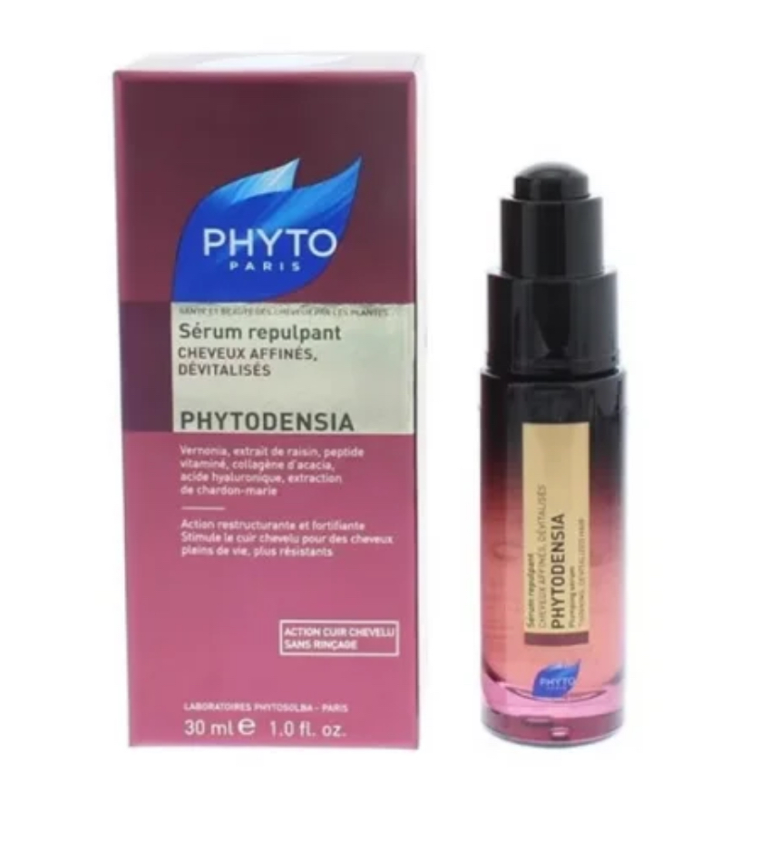 سرم فیتودنسیا از برند فیتو phytodensia Serum یک محصول با خاصیت تقویت کنندگی ریشه مو است. فیتودنسیا همچنین حجم دهنده موهای آسیب دیده و نازک است. بررسیها و آزمایشهای انجام شده نشان میدهد سرم فیتودنسیا تاثیری بالایی روی کراتین موها داشته و عملکردی پر کننده روی کراتین دارند. این محصول با کاهش 3٪ طول زنجیره پپتیدی موجب بهبود مقاومت ساختاری الیاف مو میشود.