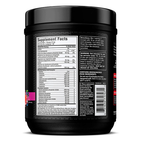 در مورد منیزیم، اسید آمینه ای ای ای ماسل تک MuscleTech Platinum EAA+ شامل کلات بیس گلیسینات منیزیم (50 میلی گرم) و اکسید منیزیم (50 میلی گرم) است. منیزیم در بیش از 600 عمل بیولوژیکی از سنتز پروتئین تا تولید انرژی نقش دارد.