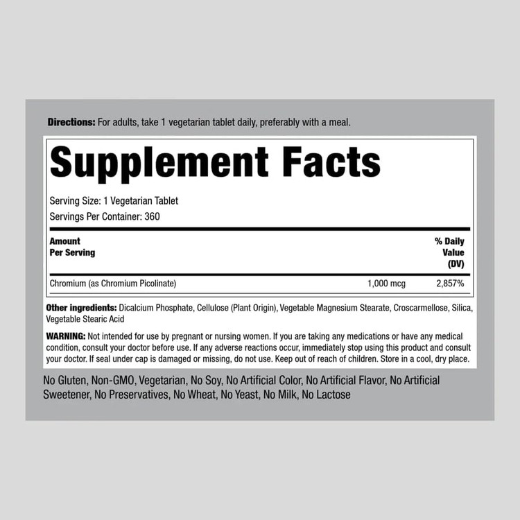 Piping Rock Chromium Picolinate 1000 mcg | 360 Tablets