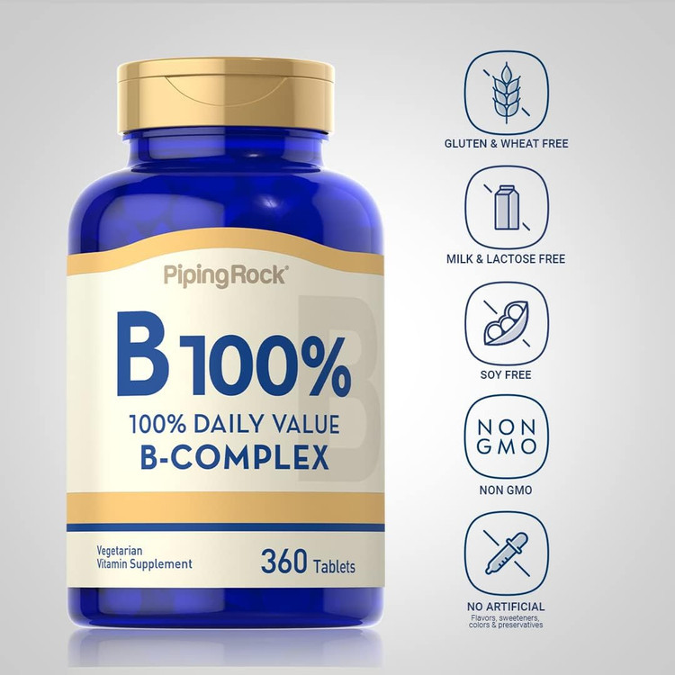 ویتامین ب 100 کمپلکس پایپینگ راک Vitamin B-100 Complex | 360 Tablet Capsules | Vegetarian Supplement