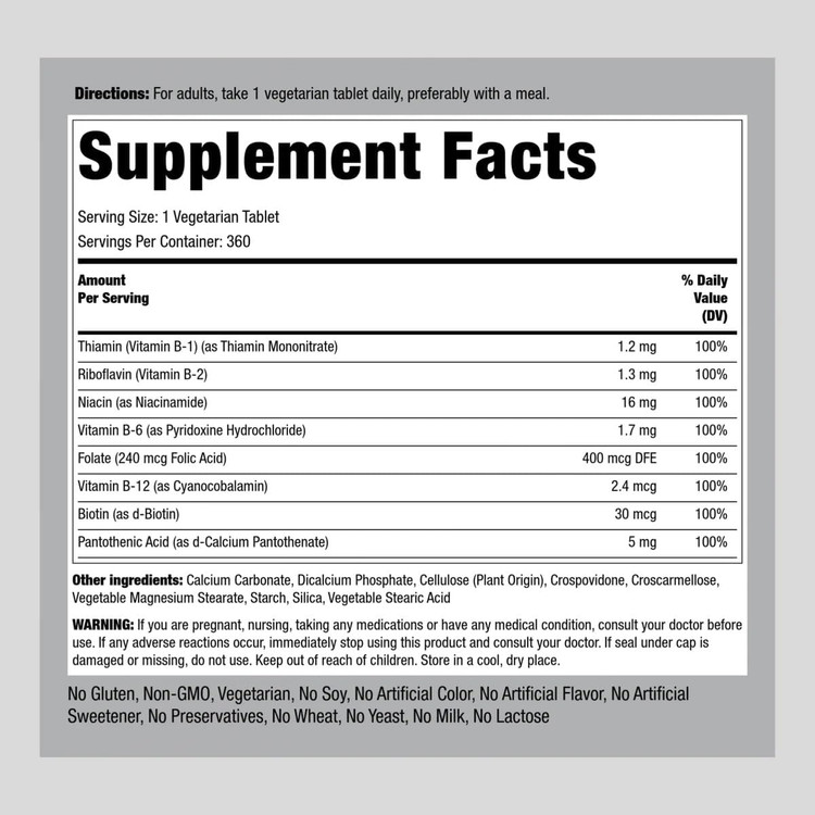 ### هشدارها:- مصرف بیش از حد برخی از ویتامینهای گروه B ممکن است منجر به مشکلاتی مانند مشکلات گوارشی یا سردرد شود.- افرادی که باردار هستند یا بیماریهای خاص دارند باید قبل از مصرف این مکمل با پزشک مشورت کنند.