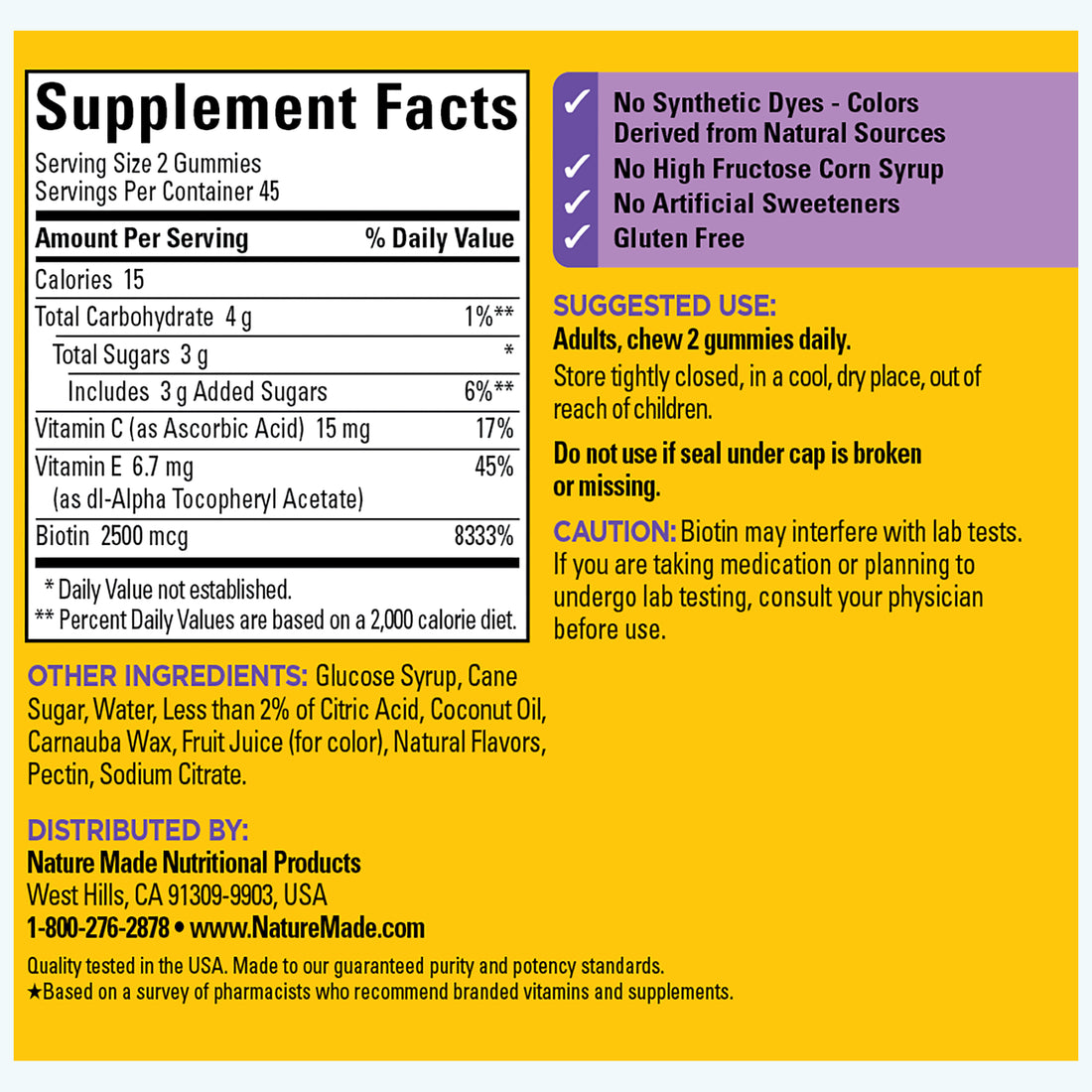 ترکیبات مکمل تقویت پوست مو ناخن نیچرمید NatureMade